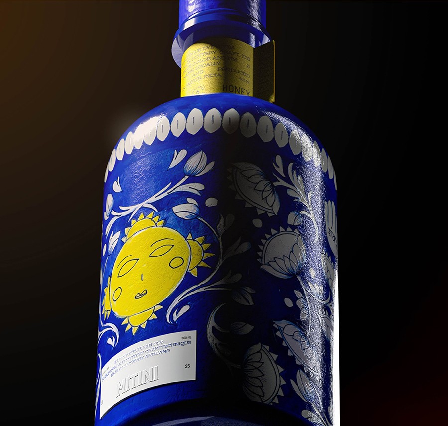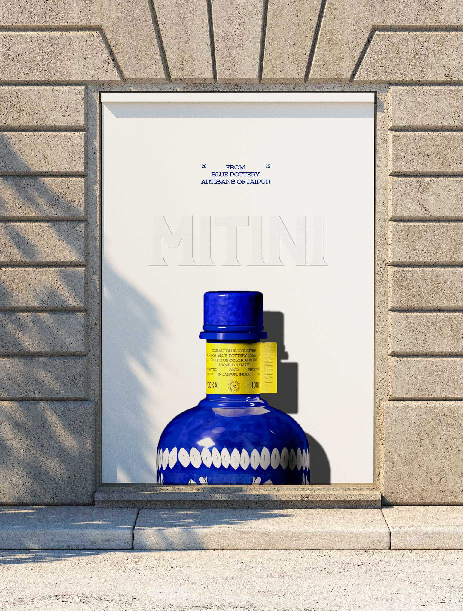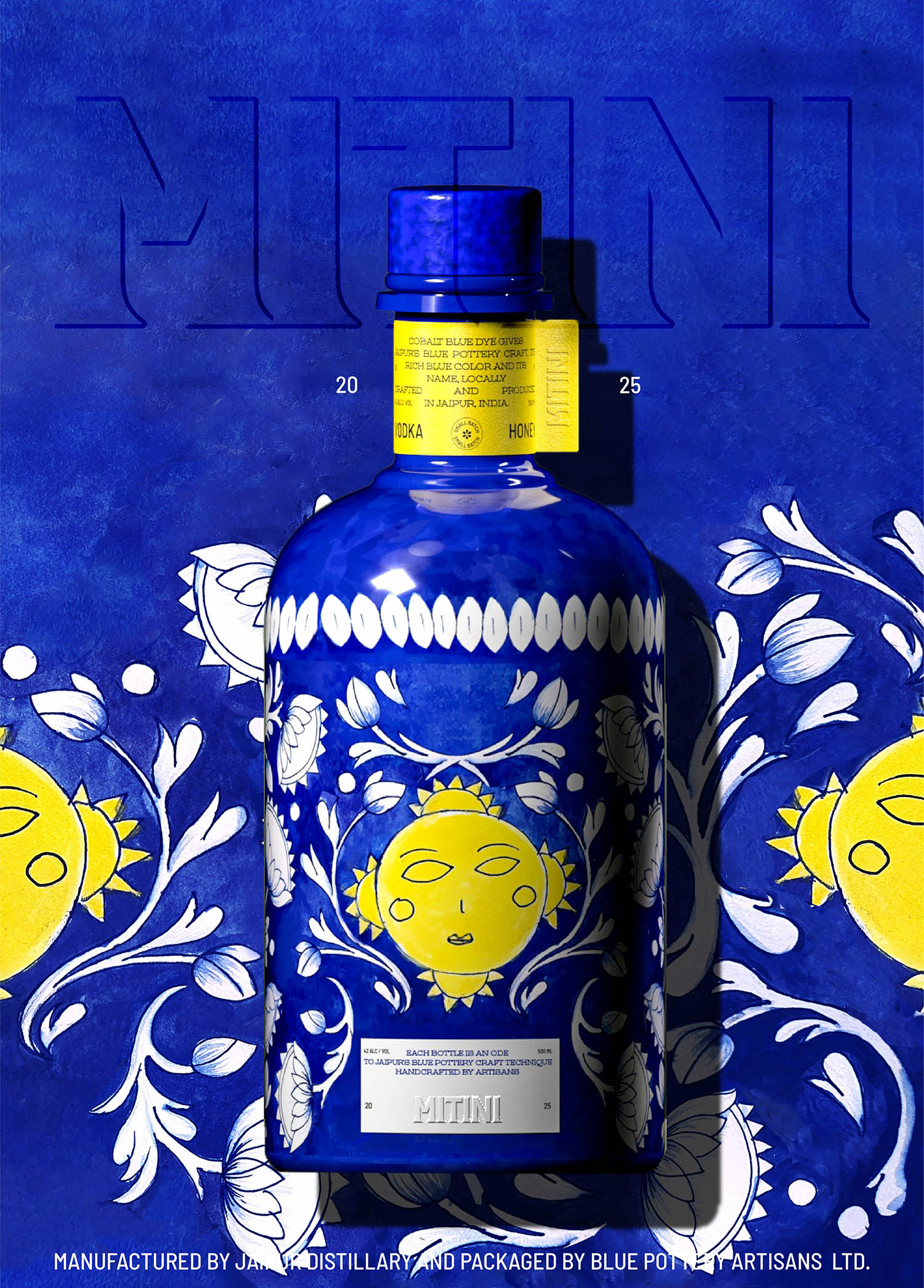 Mitini— ‘Nili Mitti’ or ‘Blue Sand’—tackles the declining relevance of Jaipur’straditional blue pottery by re-purposing its craftsmanship into a modern spirit brand. Mitini reimagines the centuries-old technique for a wider audience through an accessible