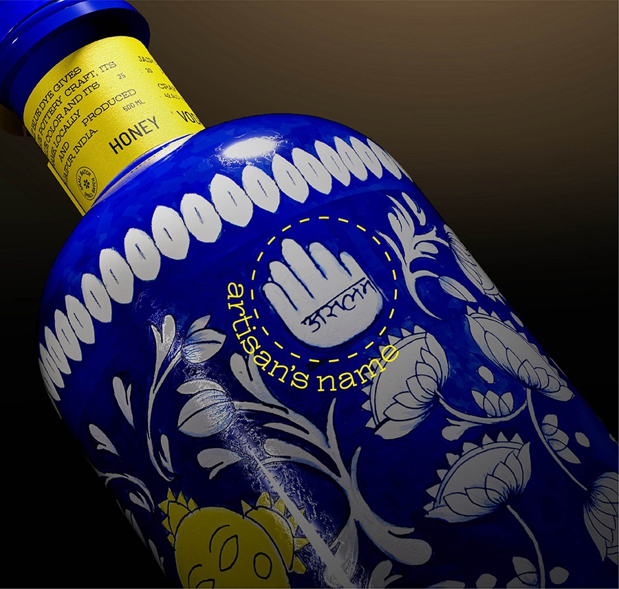 Mitini— ‘Nili Mitti’ or ‘Blue Sand’—tackles the declining relevance of Jaipur’s traditional blue pottery by re-purposing its craftsmanship into a modern spirit brand. Mitini reimagines the centuries-old technique for a wider audience through an accessible product line.