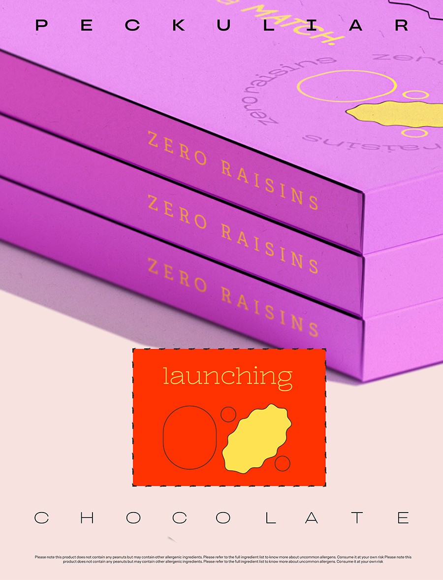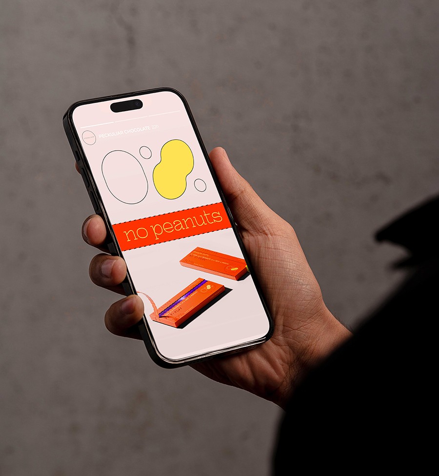A design-led solution to help negate the inconvenience of deciphering dietary restrictions from lengthy lists of ingredients. For individuals with allergies and peculiar tastes, Peckuliar Chocolate redefines the snack sharing experience with a dynamic, interactive, and functional packaging design system.